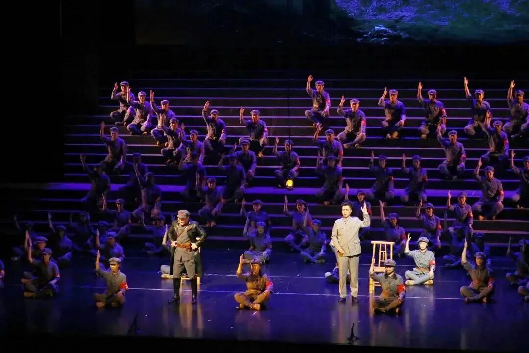 音乐剧《焦裕禄》剧照(左)、歌剧《周恩来》剧照(右)